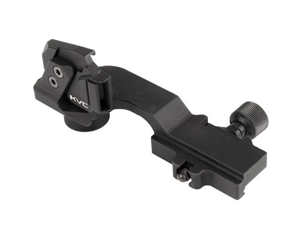 Providing a modular addition to the OEM/legacy PVS-14 weapon mount, the PWM-S conversion is a fast-attach/detach enhancement allowing shoe-based transitions from head-weapon needs. When partnered with dovetail type helmet/head-borne optics, the PWM-S enables various monoculars, magnifiers and imaging devices to transition without a screw-in decouple burden. The PWM-S positions supporting optics to the typical above-rail operational height for cooperative alignment while maintaining modular alignment. A reversible design allows various non-standard application and further use options.